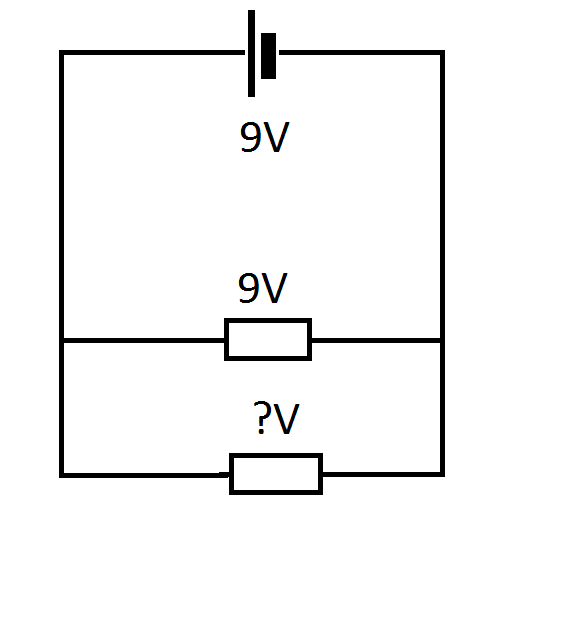 Example: This resistor has 9V across it becuase there is 9V accross the cell that it is in parallel with