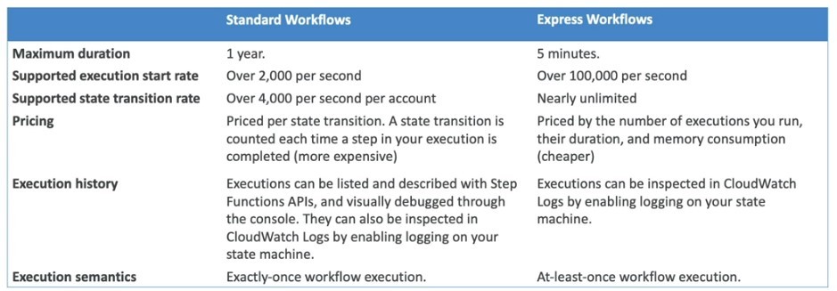 Diference between Step functions - Standard vs Express?