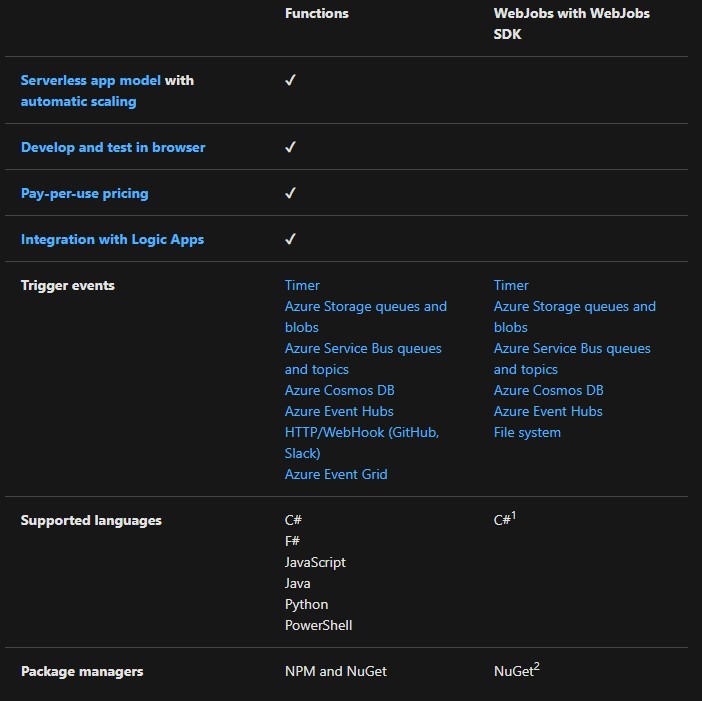 Compare Functions and WebJobs