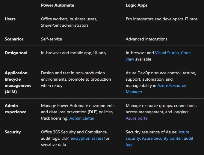 Difference between Logic Apps and Power Automate