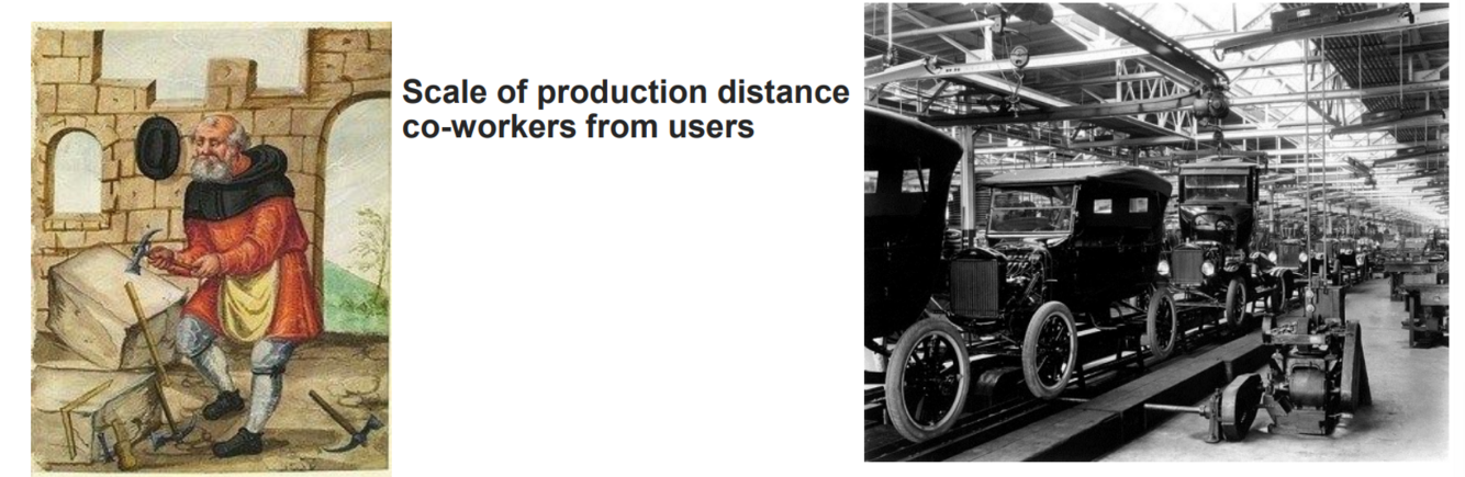 Before industrialization services and products were related closely but after industrialization this changed but is now on the way back to cope with responsibilities and new demands from customers.