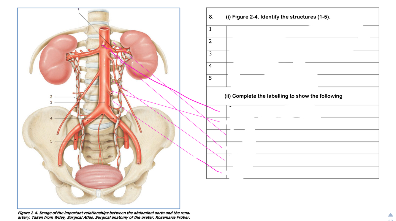 At the sacroiliac joint it will then cross the pelvic brim to go into the pelvic cavity. Here it will also cross the bifurcation of the common iliac arteries.