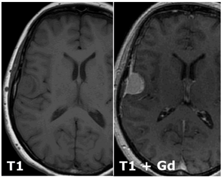 Gad enchances blood vessels and the tumour will be highly vascular