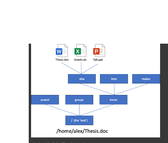 A file system is often likened to a tree structure, where the ‘trunk’ represents the ‘base’ of file system.