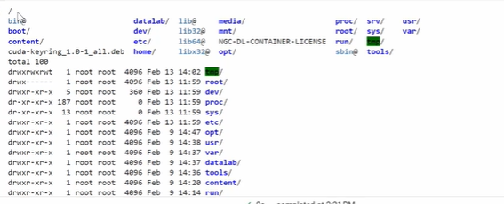 %ls - lists all contents of current working directory (from bin@ to cuda-keyring)