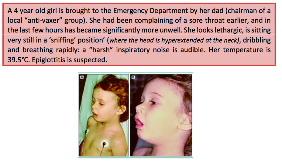 The junior doctor who first sees the girl, considers whether to examine the patient’s throat (oral cavity and oropharynx), given the history of sore throat, and to take a set of blood tests. The registrar who is supervising the junior doctor explains that she must NOT attempt either of these things on this particular child.