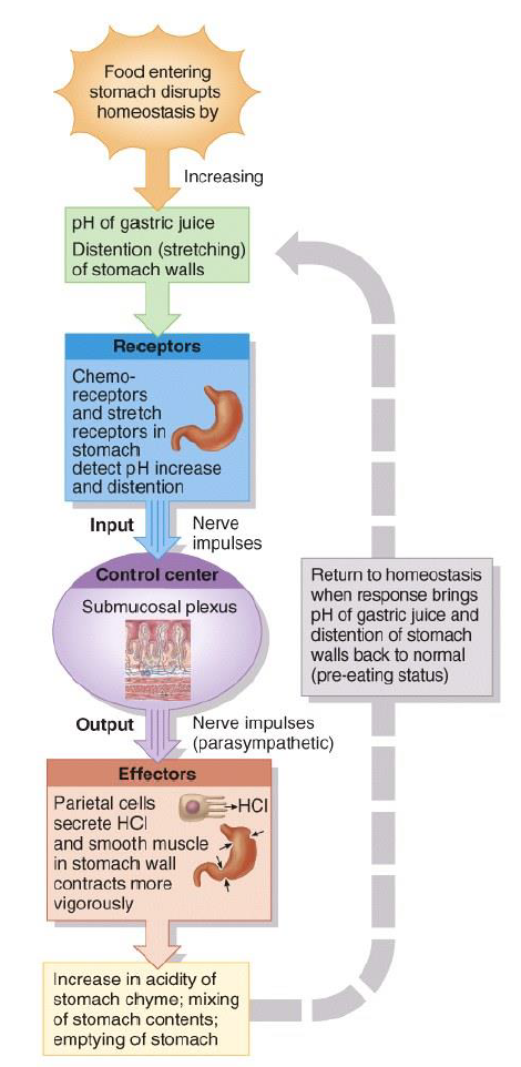 * Gastrin release inhibited when pH of gastric juice drops below 2.0