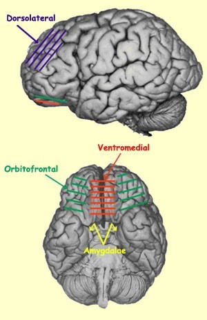 Lateral orbital prefrontal cortex (LOPFC) - assesses risk, regulates affective states