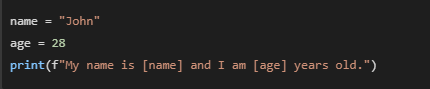 print(“My name is “ + name + “ and I am “ + age + “ years old.”)