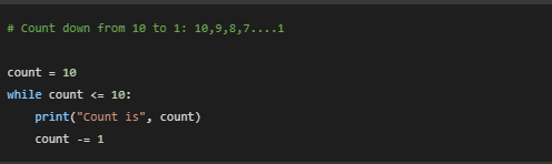 Explain why the loop might not work as expected. How would you fix it to count down from 10 to 1. - (3)