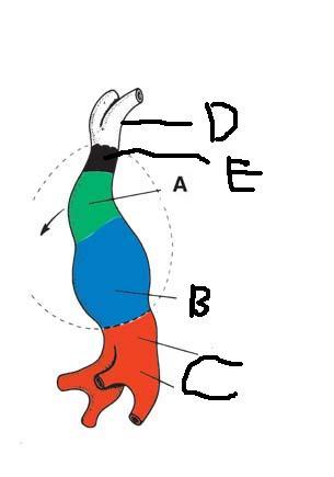 * Atrium dorsal to bulbus cordus i.e. inflow is dorsal to outflow
