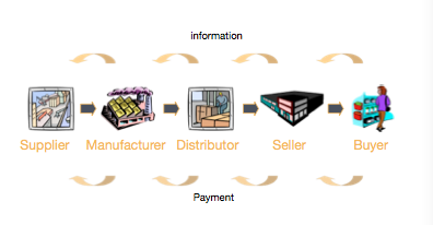 Gère de la fabrication à la vente. Ex : Walmart