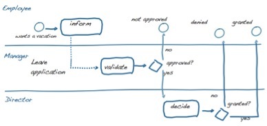 Demande de partir en vacances. Refusé ou validé par manager du département. Si validé, le directeur a décision finale.