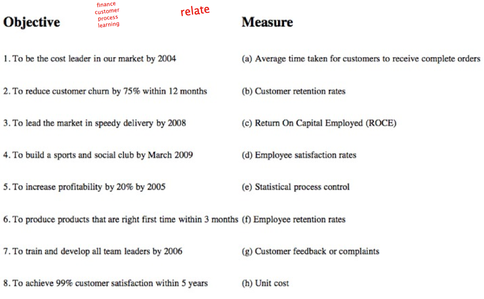 Measuring performance for improvement. Performance should be derived from strategy. Measure => action.