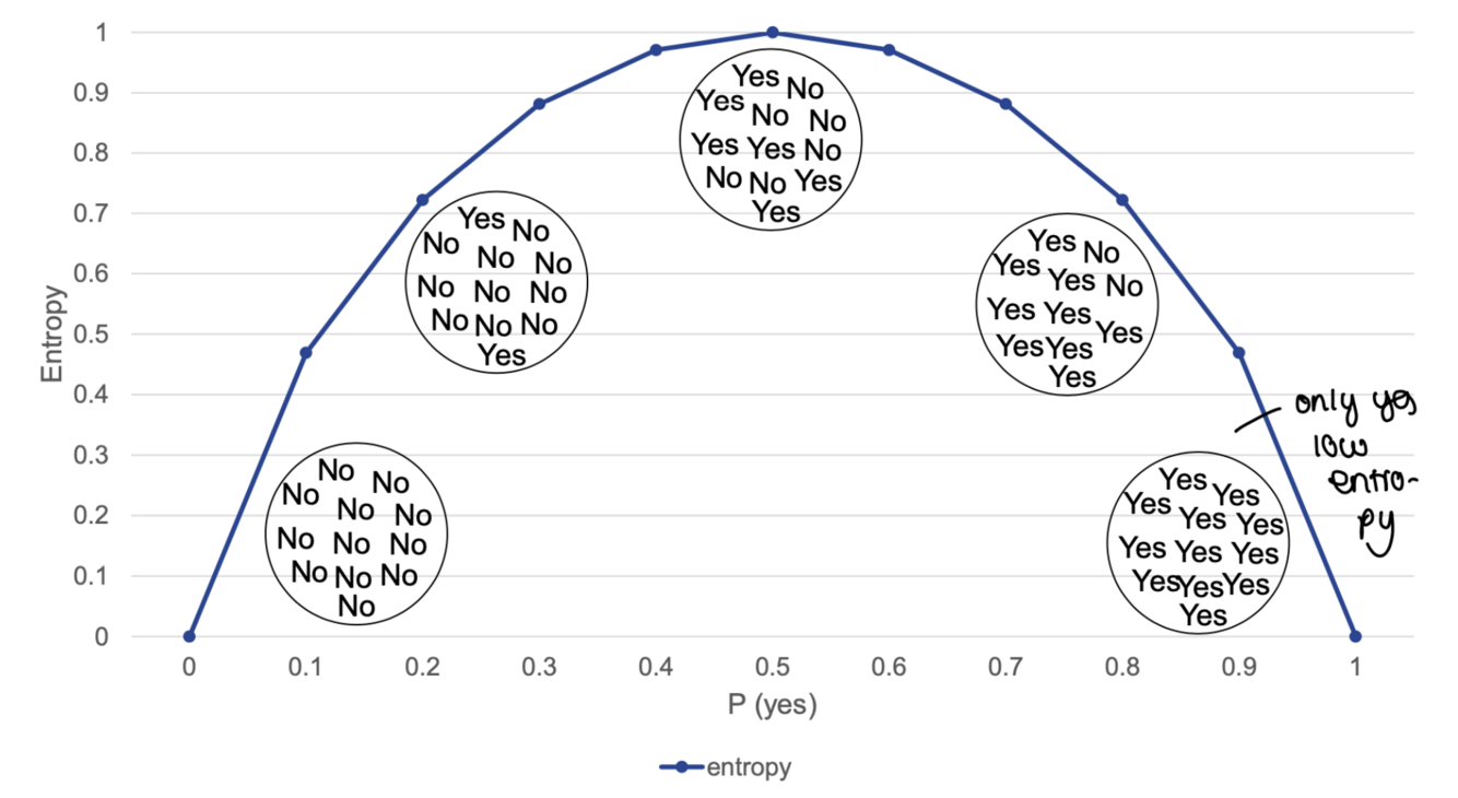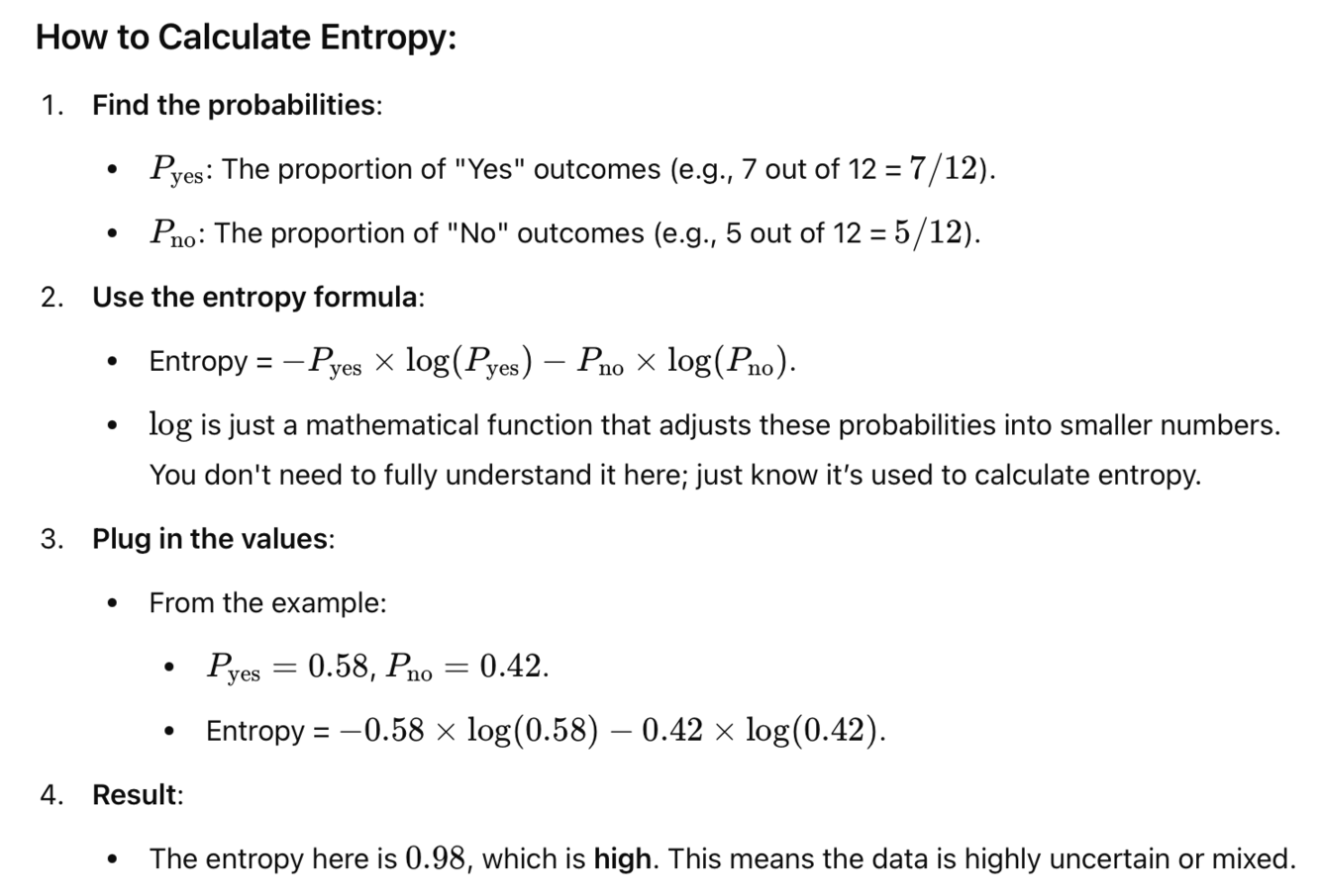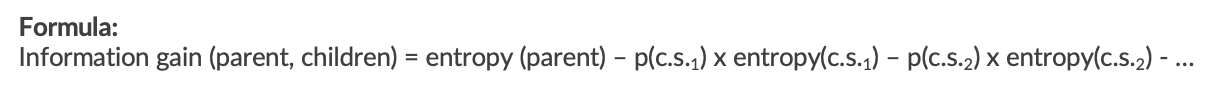 -> it measures how much a split reduces entropy (measures the change in entropy before and after splitting)