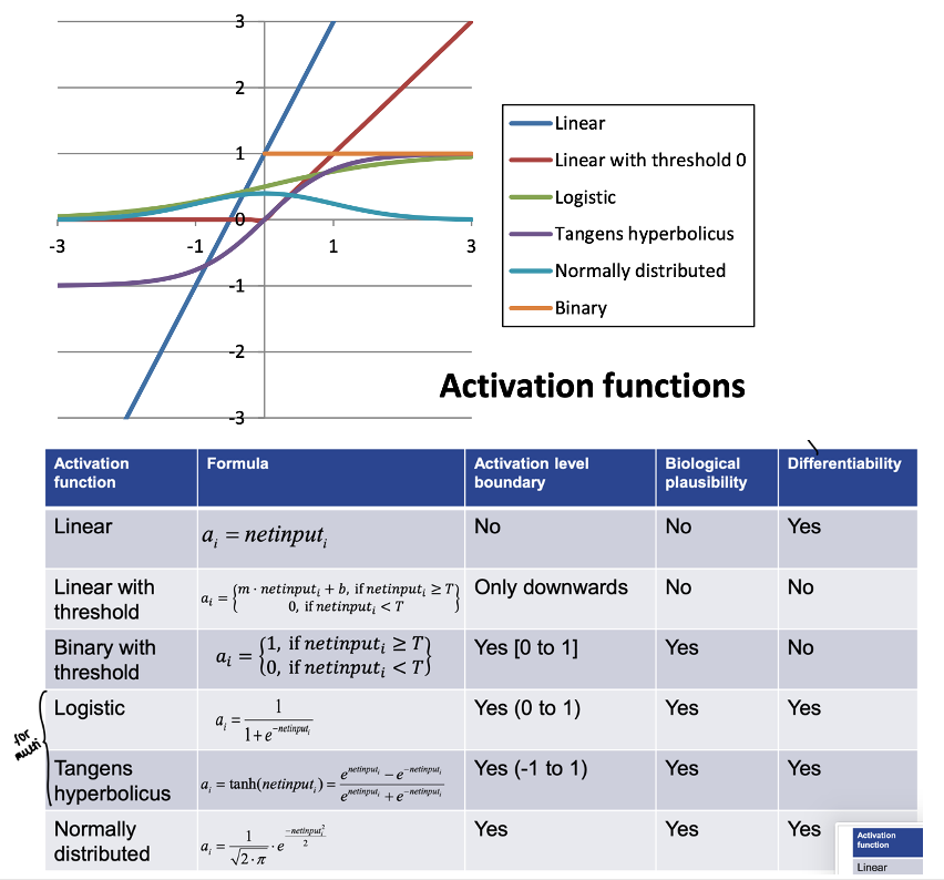 • relation between the internal activation level and the output