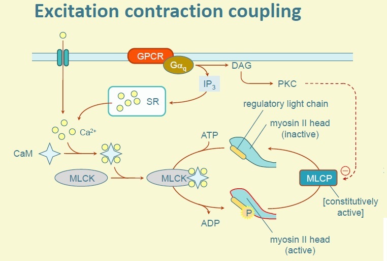 Myosin Light Chain must be activated (via phosphorylation by MLCK) to enable actin-myosin interaction which in turn leads to contraction.