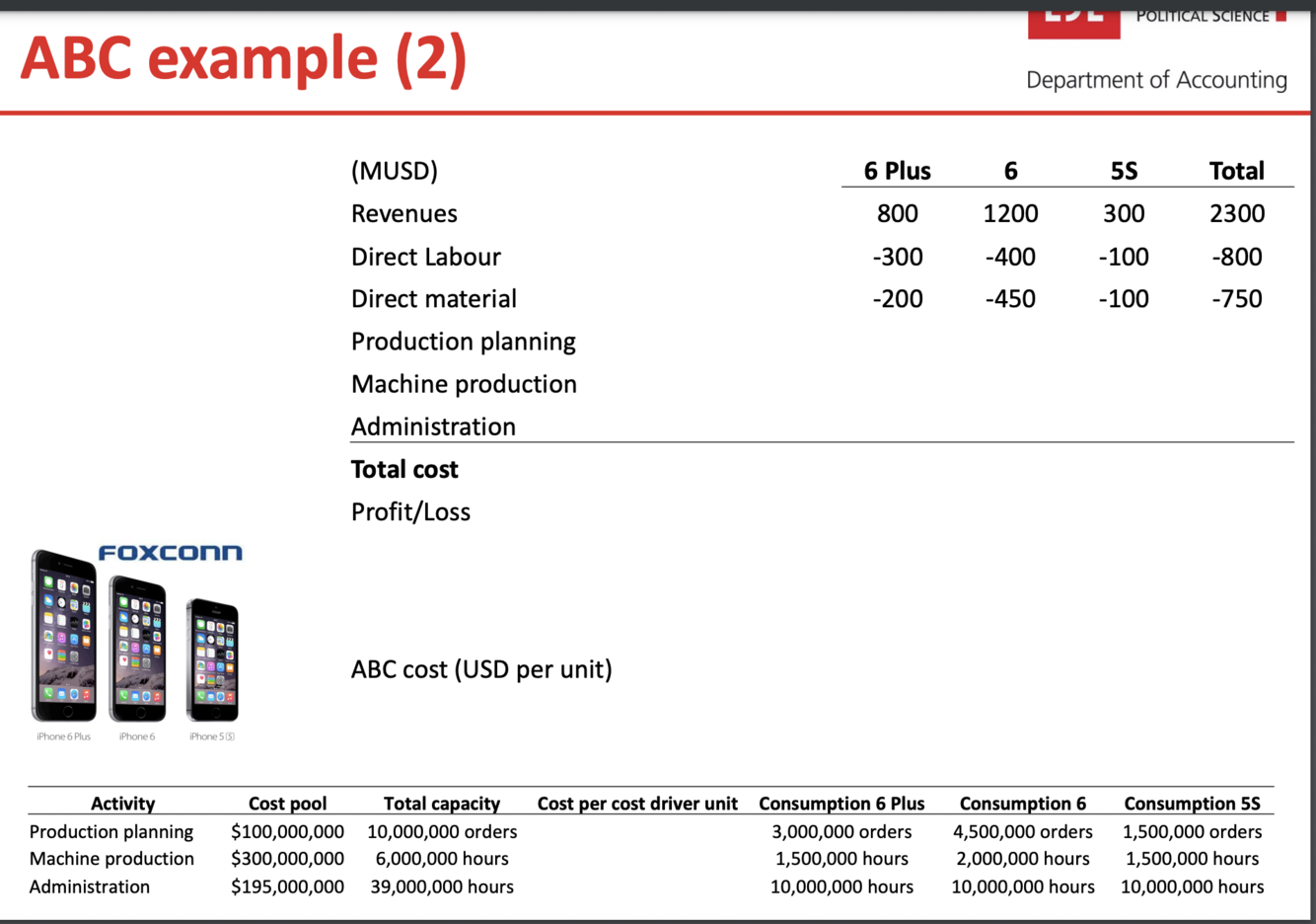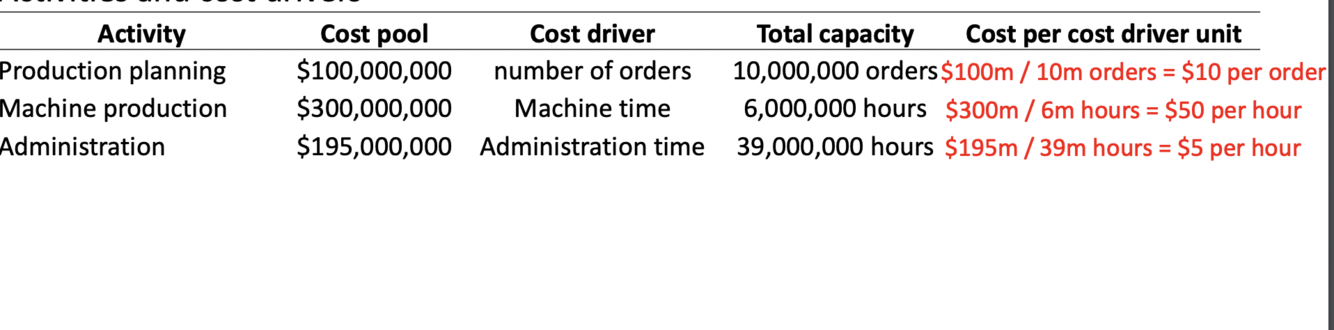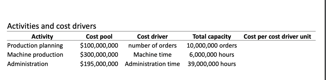 unit produced. E.g., purchase ordering, material handling. Cost drivers should be like Number of purchase orders, Number of material moves.