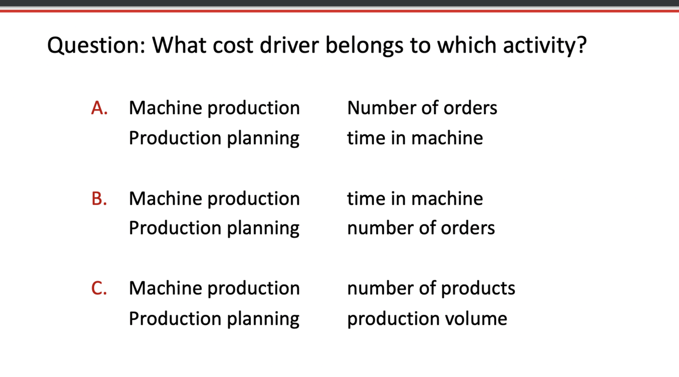 ( SO BASICALLY THE ABC HIERACHY GUIDES THE CHOICE OF COST DRIVER.