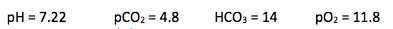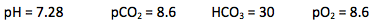 pCO2 = 5.7 HCO3 = 24 pO2 = 12.1