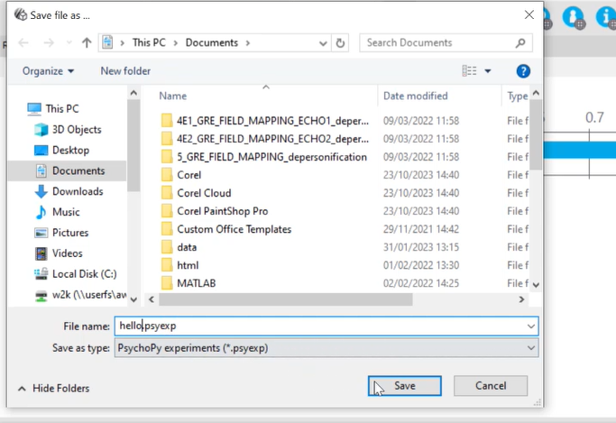 At this time, we will name it as ‘hello.psyexp’ (leave extensionas it is)