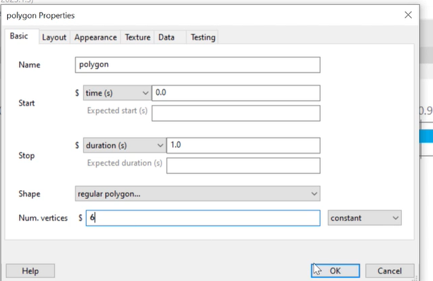 It is asking you to name the polygon stimuli in trial routine so far it is set as ‘polygon’