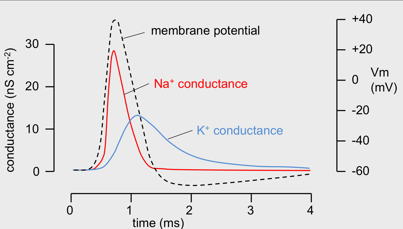 Explain how the ionic permeability of the membrane alters with time during an AP