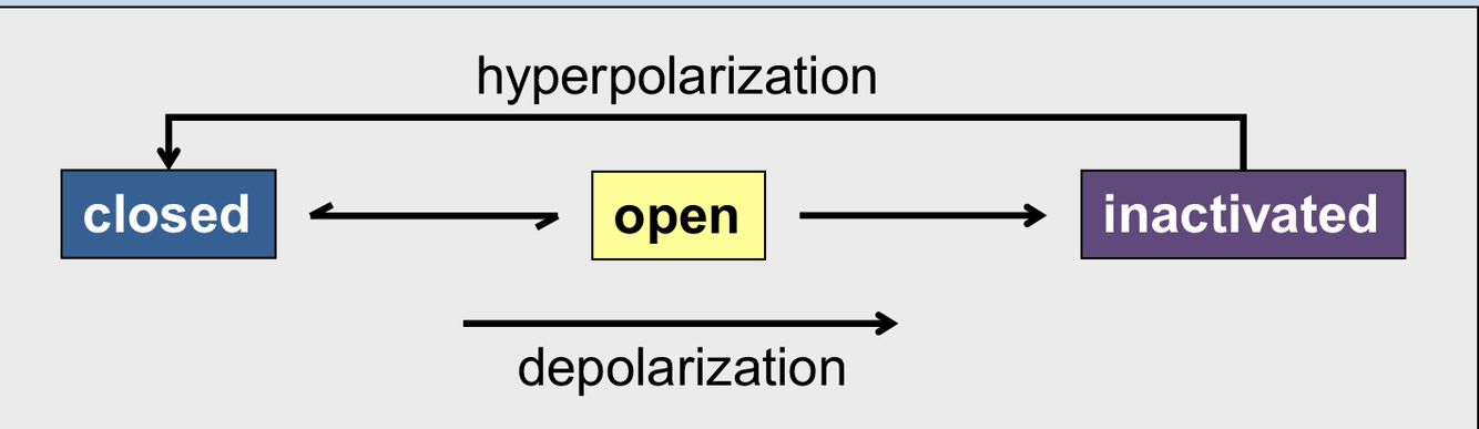Generally require K+ to go from inactivated to closed. So a change in mp can cause them to open again.