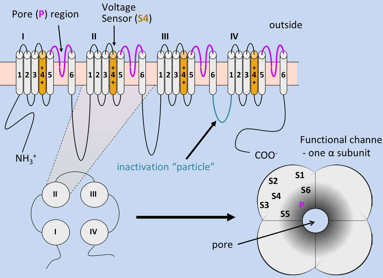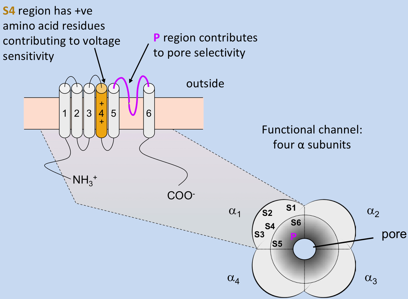 4 subunits to make a functional potassium channel but only one subunit for a functional sodium channel