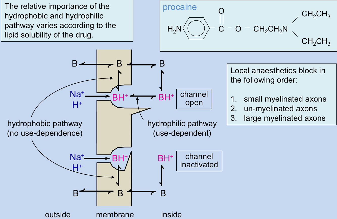 how the local anaesthetic/ blocker cna block Na+ channels more easily when it is open and remains there in the inactive state