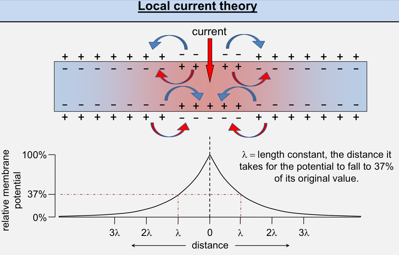 Injection of current into an axon will cause the resulting charge to spread along the axon and cause an immediate local change in the membrane potential.