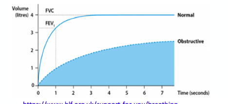 A ratio of how much air is exhaled in the first second of forced exhalation (FEV1) compared to how much can possible be exhaled (FVC).