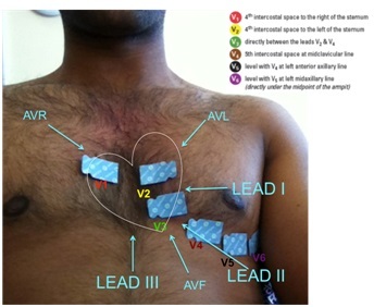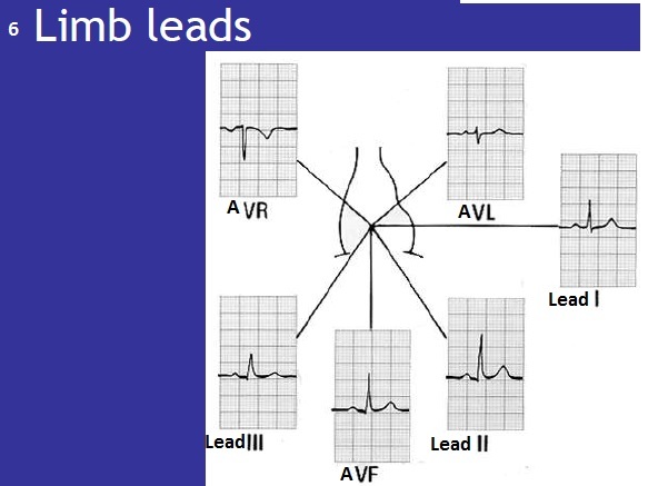 Limb leads: one on each limb (only 3 are recording - right lower limb is neutral).