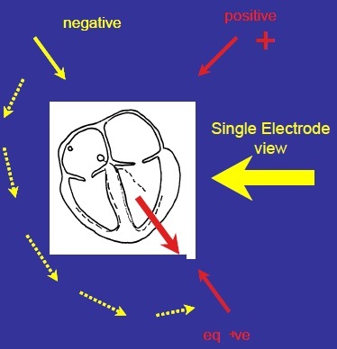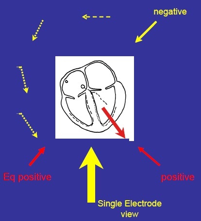 Put the two together - single electrode view looking at the heart FROM THE BOTTOM (straight up)