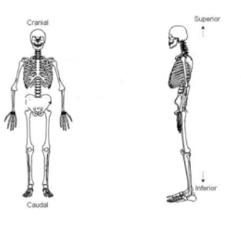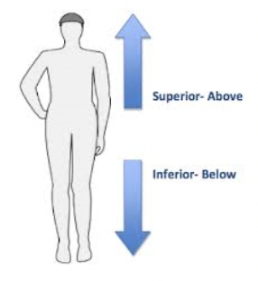 E.g. the body of the sternum is superior to the xiphoid process but inferior to the manubrium