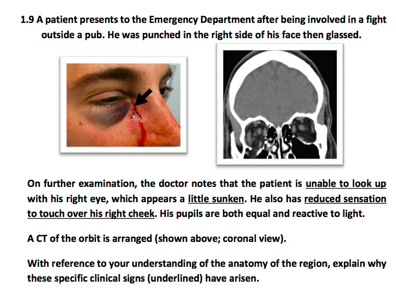 Prolapse of the contents of the orbit into the maxillary sinus. Ocular muscles become trapped (especially inferior rectus). This prevents elevation of the eyeball so when the patient tries to look up they won’t be able to.