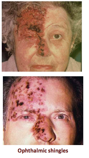The ophthalmic division of the trigeminal nerve provides sensation to the conjunctiva and the cornea. This means that latent varicella zoster from chicken pox can be reactivated and involve the ophthalmic division. This can be sight threatening.