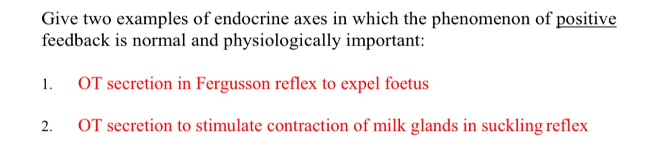 Give two examples of endocrine axes in which the phenomenon of positive feedback is normal and physiologically important: