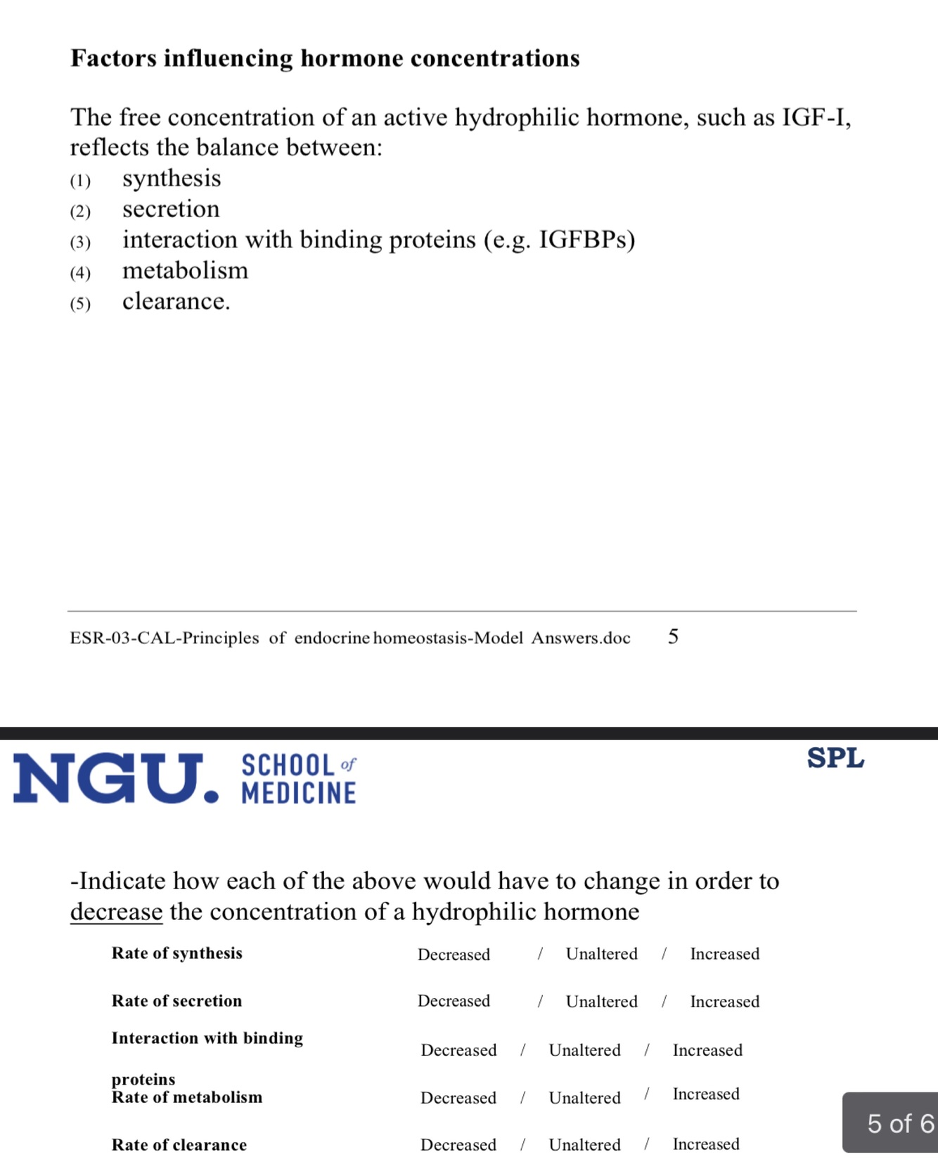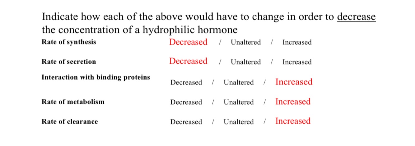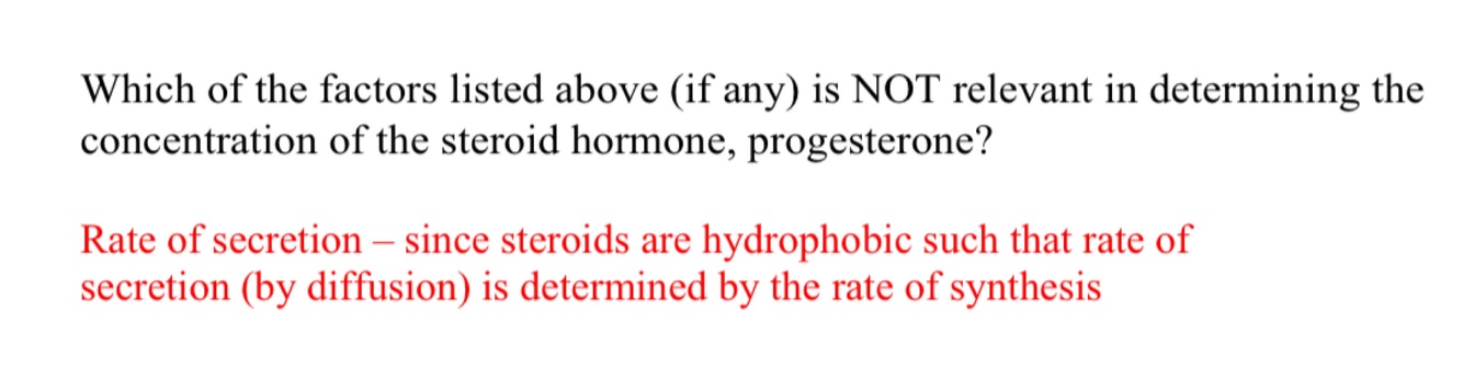 -Which of the factors listed above (if any) is NOT relevant in determining the concentration of the steroid hormone, progesterone?