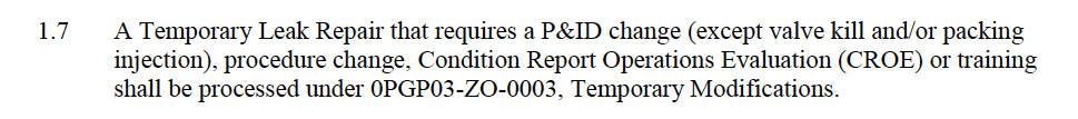 Temporary leak repair that requires a P&ID change