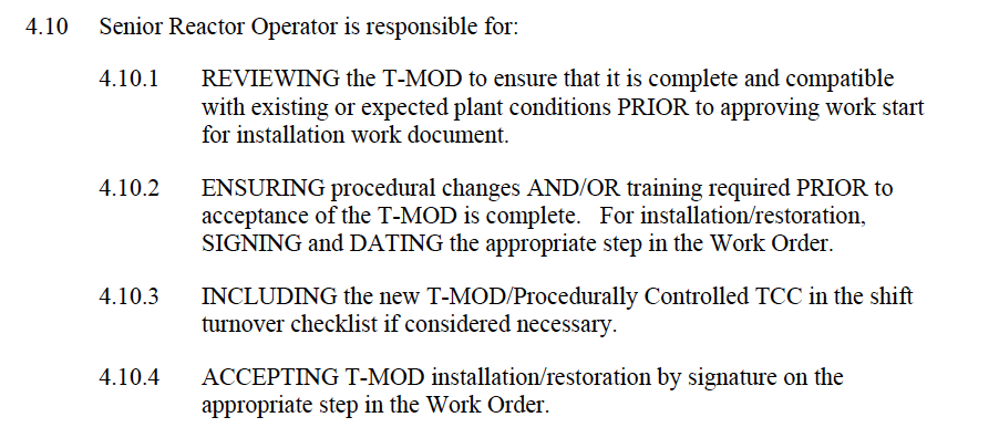 Who is responsible for ensuring applicable procedural changes and/or training required is complete prior to acceptance of the T-Mod?