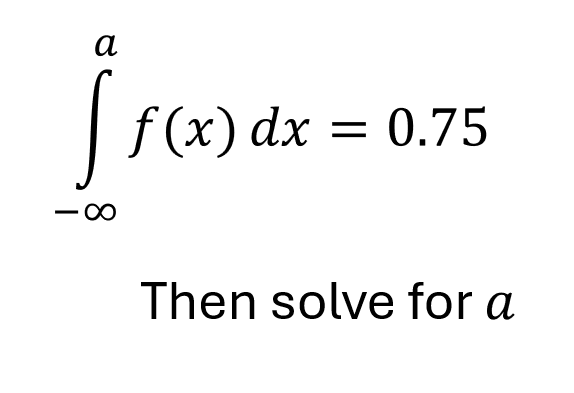 Set up an equation to find the 75th percentile, a, of a continuous probability density function f(x)