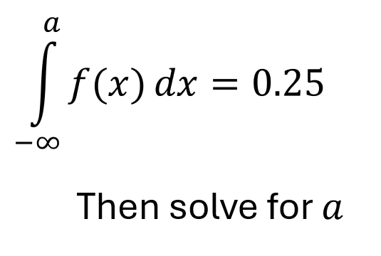 Set up an equation to find the 25th percentile, a, of a continuous probability density function f(x)