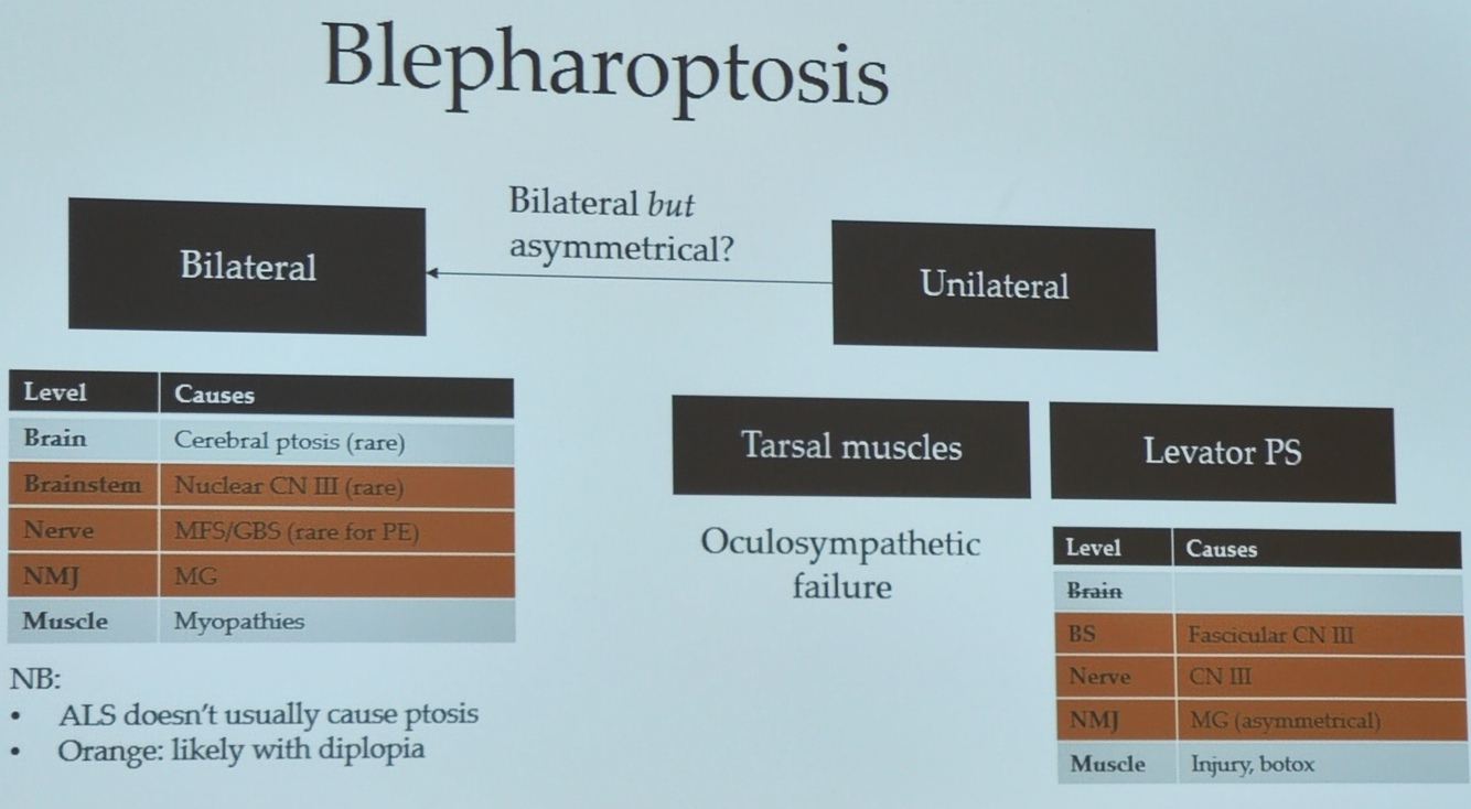- Symptoms: ptosis, miosis, NO anhidrosis