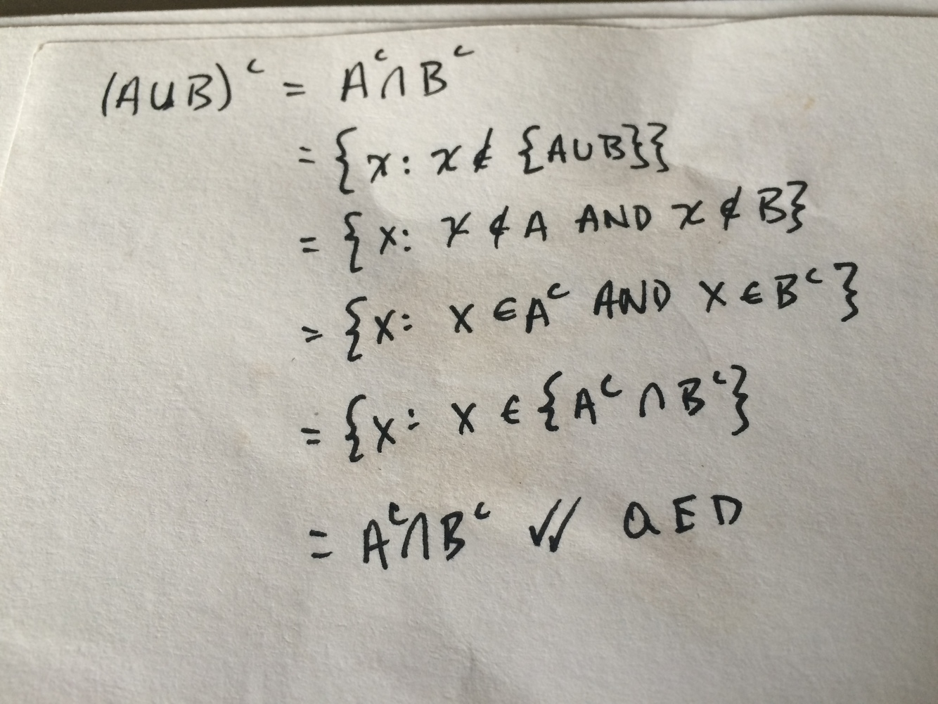 (A INT B)c = Ac U Bc