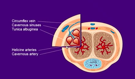 Peyronie’s disease: a fibrous change, a thickening in the tunica (from previous inflamm process) → physical distortion of the erect penis.