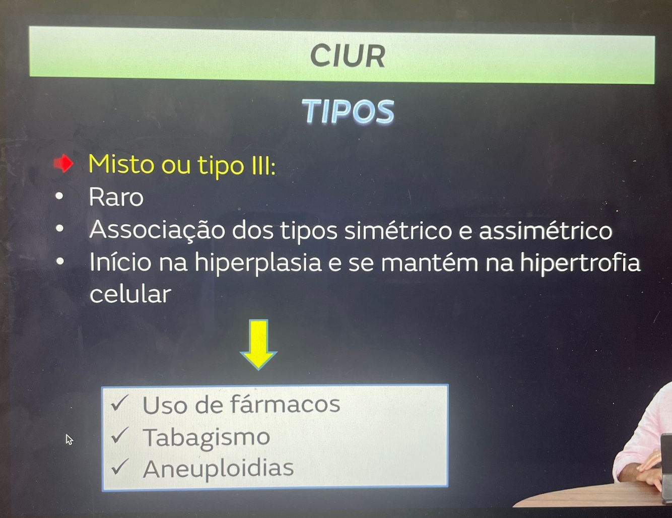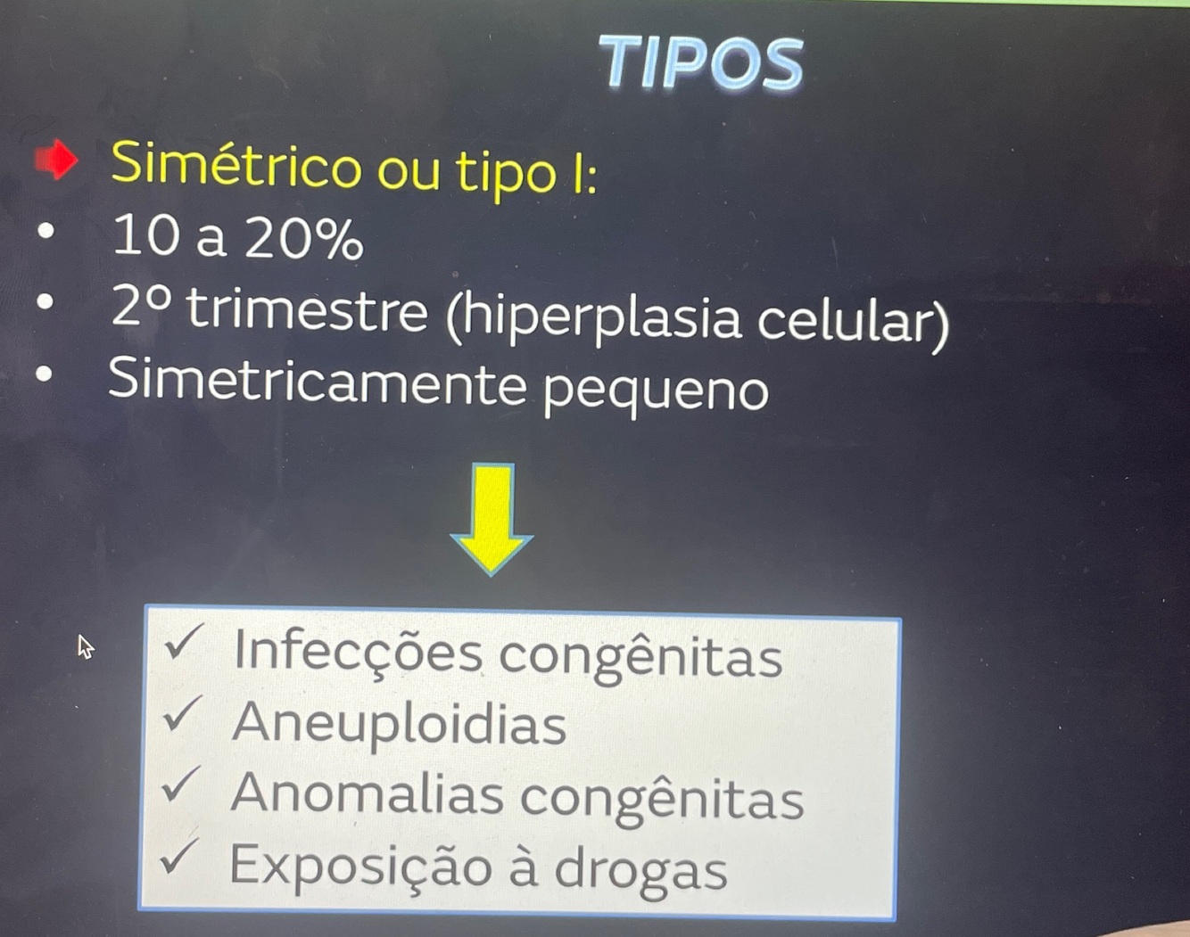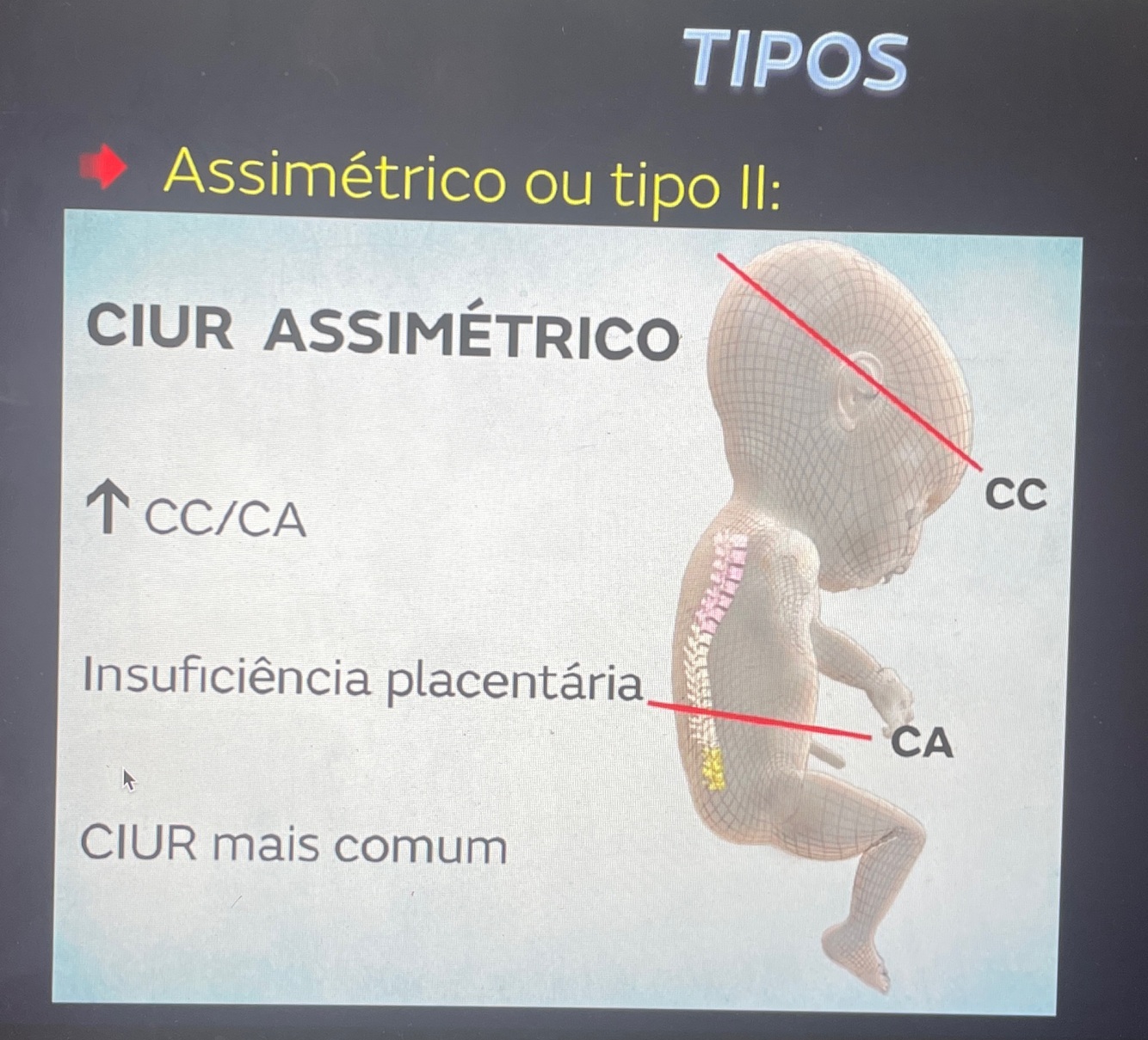 1. Circunferência abdominal/peso fetal estimado ‹ p10;