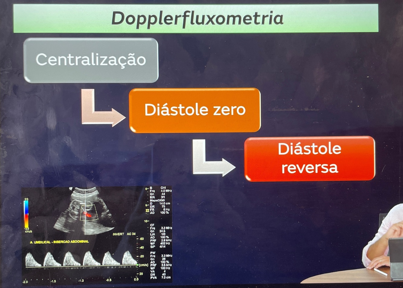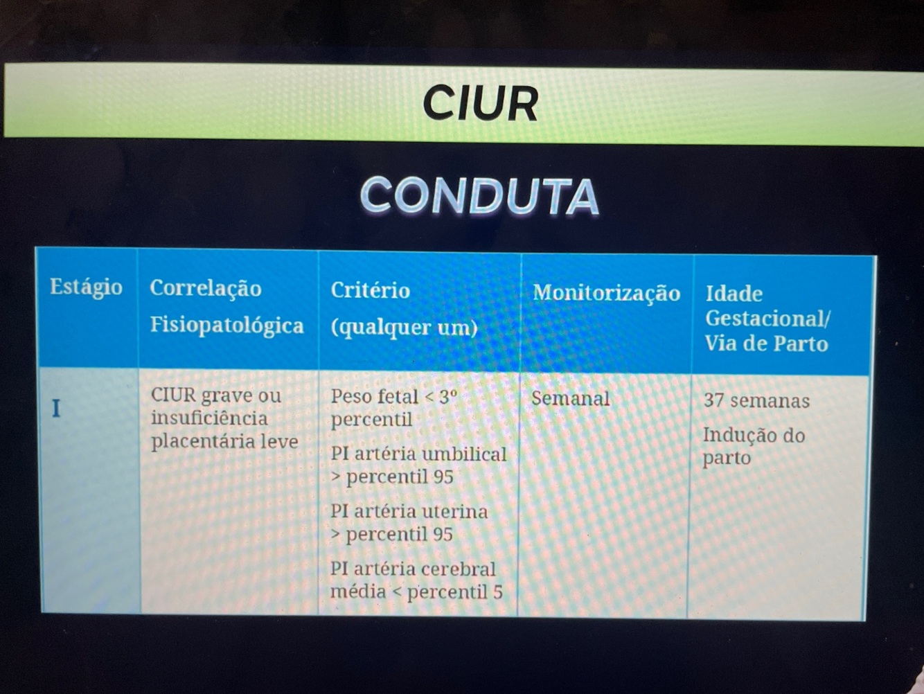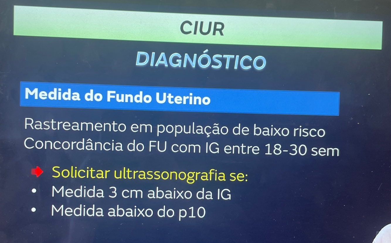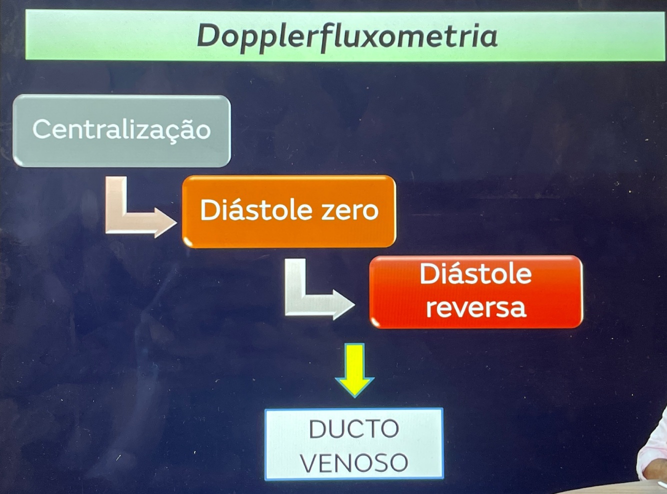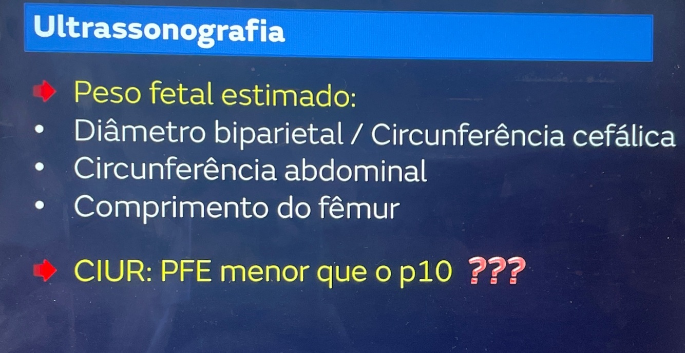 Circunferência abdominal/ peso fetal estimado ‹ p3 ou diástole zero ou reversa na artéria umbilical;