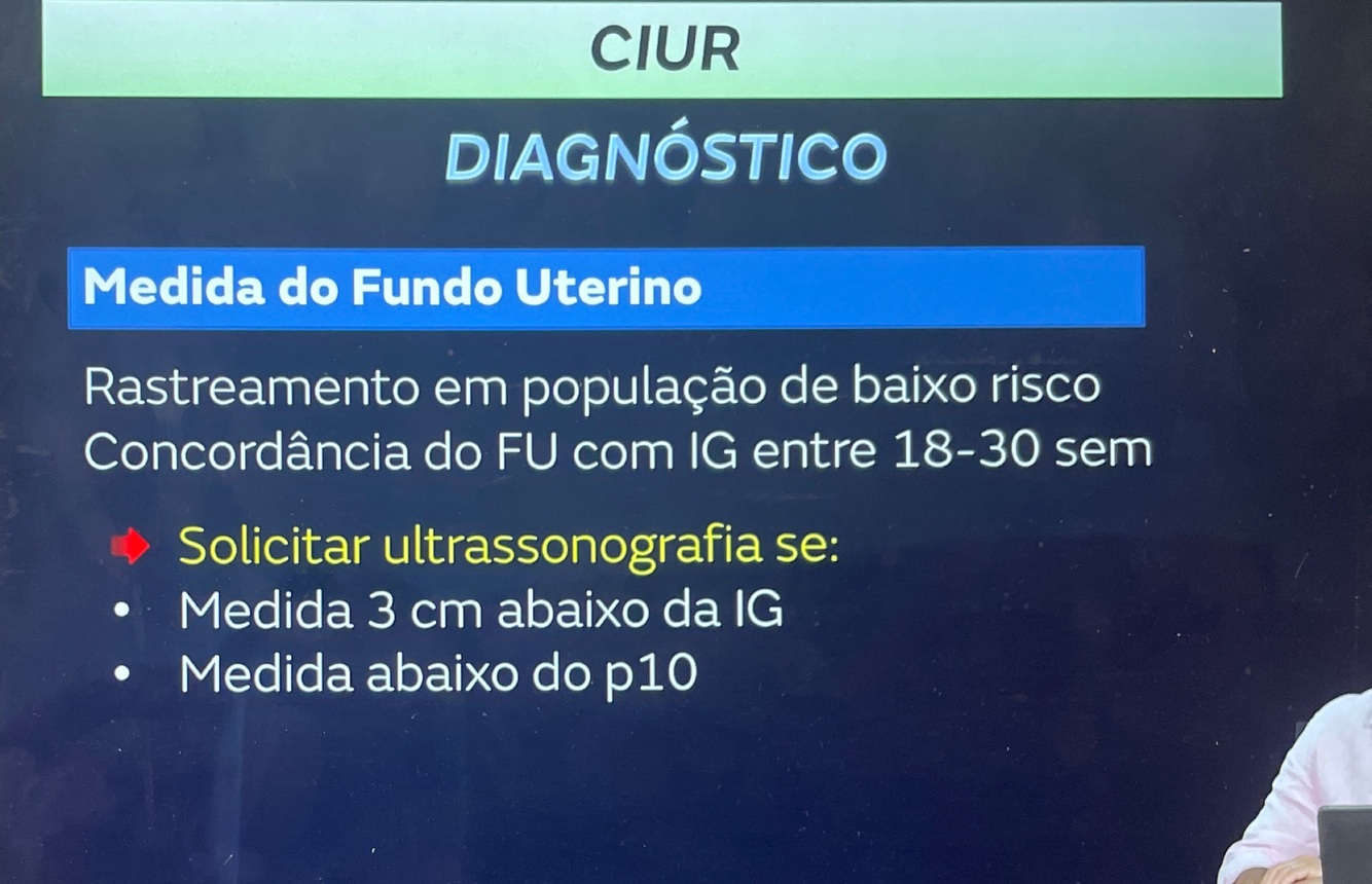 2. Circunferência abdominal/peso fetal estimado cruzando mais de dois quartis (menos 50%) na curva de crescimento;