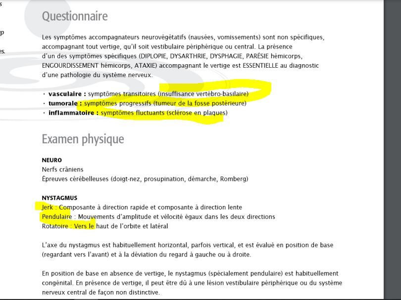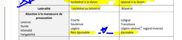 VESTIBULAIRE_–) mvmt LENT SE DIRIGE VERS LÉSION , et correction RAPIDE Du côté opposé